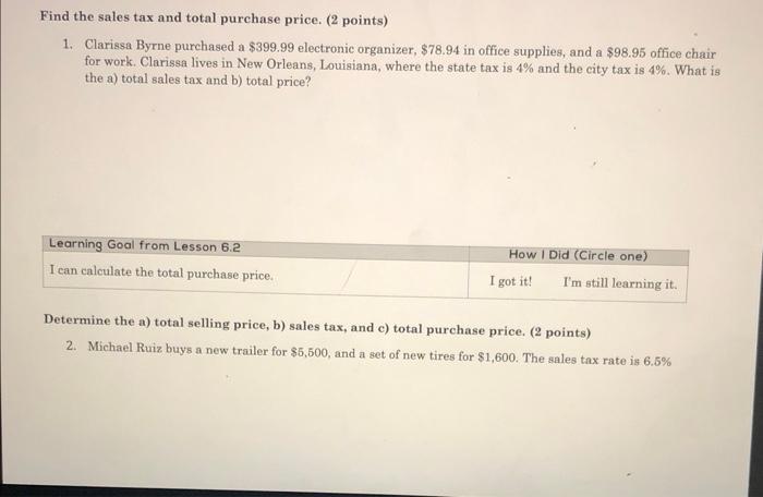 Solved Find The Sales Tax And Total Purchase Price 2 Chegg Com